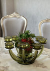 8 Kollu Yeşil  Renk Kristal Şamdan & Çiçek Tanzimli Vazo