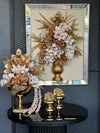 Evinizin girişinde, salonunuzda veya konsol üzerinde zarafetiyle dikkat çekecek bu özel set; metalik gold detaylarla zenginleştirilmiş ayakta duran çiçek aranjmanı, duvar tipi çiçekli tablo ve tamamlayıcı aksesuarlarla sunuluyor.