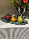 Dekoratif Polyester Meyve Seti – Yaprak Tepsili (3’lü Set)