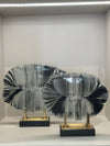 Camın zarif dokusu ve el yapımı formuyla ön plana çıkan bu özel parçalar, ister tek başına ister ikili set olarak sergilenebilir. Masa üstlerinde, konsollarda ya da raflarda estetik bir duruş sunar.