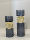 İkili Kristal İthal Mumluk Set - Füme Renk Bal Küreli