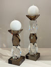 İkili Kristal Uzun Prizma Şamdan Şeffaf Bronz