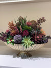 Doğal görünümlü yapay sukulentlerle tamamlanmış ithal döküm vazo bakım gerektirmeden uzun ömürlü kullanım sunar