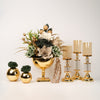 Yapay Çiçekli Kare Ayaklı Gold Şamdanlı Set No:2