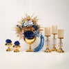 Yapay Çiçekli Kare Ayaklı Gold Şamdanlı Set No:3