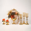 Yapay Çiçekli Kare Ayaklı Gold Şamdanlı Set No:4
