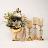 Yapay Çiçekli Kare Ayaklı Gold Şamdanlı Set No:7