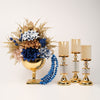 Yapay Çiçekli Kare Ayaklı Gold Şamdanlı Set No:8