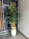 Göz alıcı görünümüyle yaşam alanlarınıza doğallık katan bu özel dekoratif ürün, ithal yapay areka ağacı ve modern gold detaylı mat saksıdan oluşur. Gerçeğe yakın dokusu ve canlı yeşil tonları sayesinde hem iç hem dış mekanlarda şıklığı ve ferahlığı bir araya getirir.