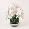 Yapay Islak Orkideli Gümüş Yassı Vazo