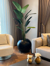 Geniş salonlar, oturma alanları veya ofis köşelerinde zarafeti ve doğallığı bir arada sunan bu dekoratif set, ithal gerçeğe en yakın starliçe bitkisiyle hazırlanmıştır. Mat siyah yuvarlak formlu vazo, modern dekorasyon tarzına güçlü bir tamamlayıcı olarak öne çıkar.