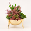 Gold görünümlü, fildişi vazo içinde sunulan bu yapay sukulent aranjmanı; farklı dokularda bitkiler, mini kabak ve kozalak detaylarıyla sonbahar temalı sıcak bir atmosfer yaratır. Dekoratif kullanım için ideal ve bakımı zahmetsizdir.