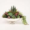 Gümüş renkli geniş vazo içerisinde sunulan bu büyük boy yapay sukulent aranjmanı, farklı ton ve dokularda bitkilerle zenginleştirilmiştir. Bakım gerektirmeyen şık tasarımıyla ev, ofis ve etkinlik alanlarında doğal bir görünüm sağlar.