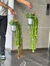 • Şık ve Zarif Tasarım: El işçiliği burgulu ferforje detayları, ürüne sanatsal ve sofistike bir hava katar. Ferforjenin zamansız güzelliği, yapay bitkinin canlılığıyla birleşerek göz alıcı bir dekorasyon parçası oluşturur.