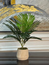 Zarif yeşil renkteki yapay bitki detayları ile evinizin atmosferini canlandırır.; - Tek parça halinde gelen beton vazo, kolayca yerleştirilebilir ve dekorasyonunuza şıklık katar.; - Yüksek kaliteli malzemesi sayesinde uzun ömürlü kullanım sunar ve temizliği pratiktir.; - Türkiye'de üretilmiş olup yerel kaynakların kullanılmasına katkıda bulunurken, estetik görünümüyle dikkat çeker.; -Bitkiyle birlikte yükseklik 50 cm