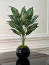 Yapay Bitkili Dekoratif Cam Vazo Siyah