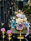 Yapay Çiçekli Gold Kare Ayak Vazo 3 Parça Set No:20