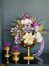 Yapay Çiçekli Gold Kare Ayak Vazo 3 Parça Set No:7