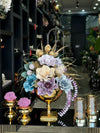 Yapay Çiçekli Gold Kare Ayak Vazo 5 Parça Set No:12
