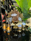 Yapay Çiçekli Gold Kare Ayak Vazo 5 Parça Set No:6