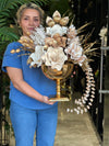 Yapay Çiçekli Kare Ayaklı Vazo 65cm Yüksekliğindedir.