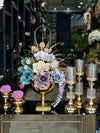 Yapay Çiçekli Gold Kare Ayak Vazo Şamdanlı Set No:3