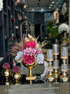 Yapay Çiçekli Gold Kare Ayak Vazo Şamdanlı Set No:4