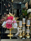 Yapay Çiçekli Gold Kare Ayak Vazo Şamdanlı Set No:8