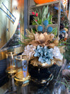 Yapay Çiçekli Gold Yassı Vazo 3 Parça Set No:1
