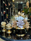 Yapay Çiçekli Gold Yassı Vazo 3 Parça Set No:13