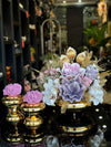 Yapay Çiçekli Gold Yassı Vazo 3 Parça Set No:17