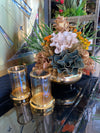 Yapay Çiçekli Gold Yassı Vazo 3 Parça Set No:2