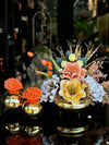 Yapay Çiçekli Gold Yassı Vazo 3 Parça Set No:20