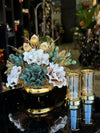 Yapay Çiçekli Gold Yassı Vazo 3 Parça Set No:28