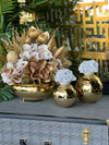Yapay Çiçekli Gold Yassı Vazo 45*30cm