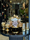 Yapay Çiçekli Gold Yassı Vazo 5 Parça Set No:11