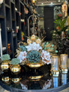 Yapay Çiçekli Gold Yassı Vazo 5 Parça Set No:16