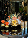 Yapay Çiçekli Gold Yassı Vazo 5 Parça Set No:18