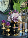 Yapay Çiçekli Gold Yuvarlak Vazo 5 Parça Set No:2
