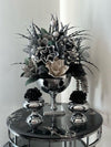 Yapay Çiçekli Gümüş Kare Ayak Vazo 3 Parça Set No:2