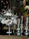 Yapay Çiçekli Gümüş Kare Ayak Vazo Şamdanlı Set No:12