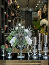 Yapay Çiçekli Gümüş Kare Ayak Vazo Şamdanlı Set No:4