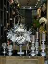 Yapay Çiçekli Gümüş Kare Ayak Vazo Şamdanlı Set No:6