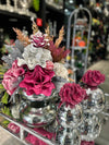 Yapay Çiçekli Gümüş Yassı Vazo 3 Parça Set No:13