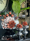 Yapay Çiçekli Gümüş Yassı Vazo 3 Parça Set No:14