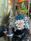 Yapay Çiçekli Gümüş Yassı Vazo 3 Parça Set No:2