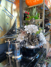 Yapay Çiçekli Gümüş Yassı Vazo 3 Parça Set No:3