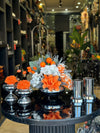Yapay Çiçekli Gümüş Yassı Vazo 5 Parça Set No:10