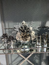 Yapay Çiçekli Gümüş Yassı Vazo 5 Parça Set No:2