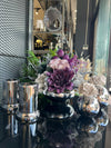 Yapay Çiçekli Gümüş Yassı Vazo 5 Parça Set No:3